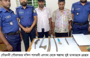 গৌরনদীতে অস্ত্রসহ দুই ডাকাত গ্রেপ্তার