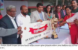 গৌরনদীতে জাতীয় গোল্ডকাপ ফুটবল টুর্নামেন্টের পুরস্কার বিতরন