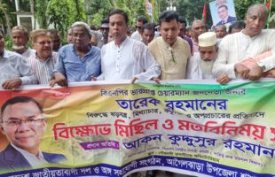 দেশ নায়ক তারেক রহমানকে নিয়ে কটুক্তি ও জাতীয় সংসদ নির্বাচন বানচালের ষরযন্ত্রের প্রতিবাদে গৌরনদীতে বিক্ষোভ মিছিল ও সমাবেশ