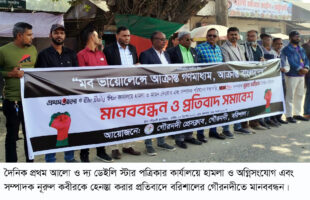 সংবাদপত্র কার্যালয়ে হামলার প্রতিবাদে গৌরনদীতে মানববন্ধন ও প্রতিবাদ সমাবেশ