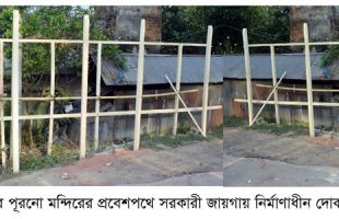 গৌরনদীতে মন্দিরের প্রবেশপথ বন্ধ করে সরকারী জায়গায় দোকান নির্মাণ